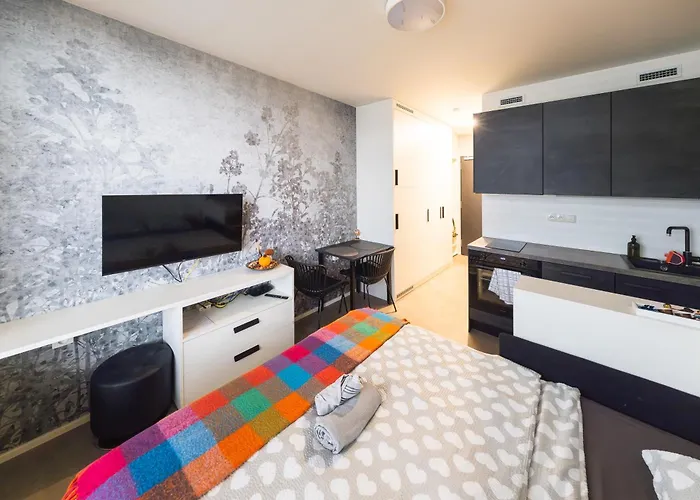 Dzielnica Malá Strana jest w prawie 2,1 km, natomiast Willa Bertramka - w małej odległości od 1-pokojowego apartamentu.